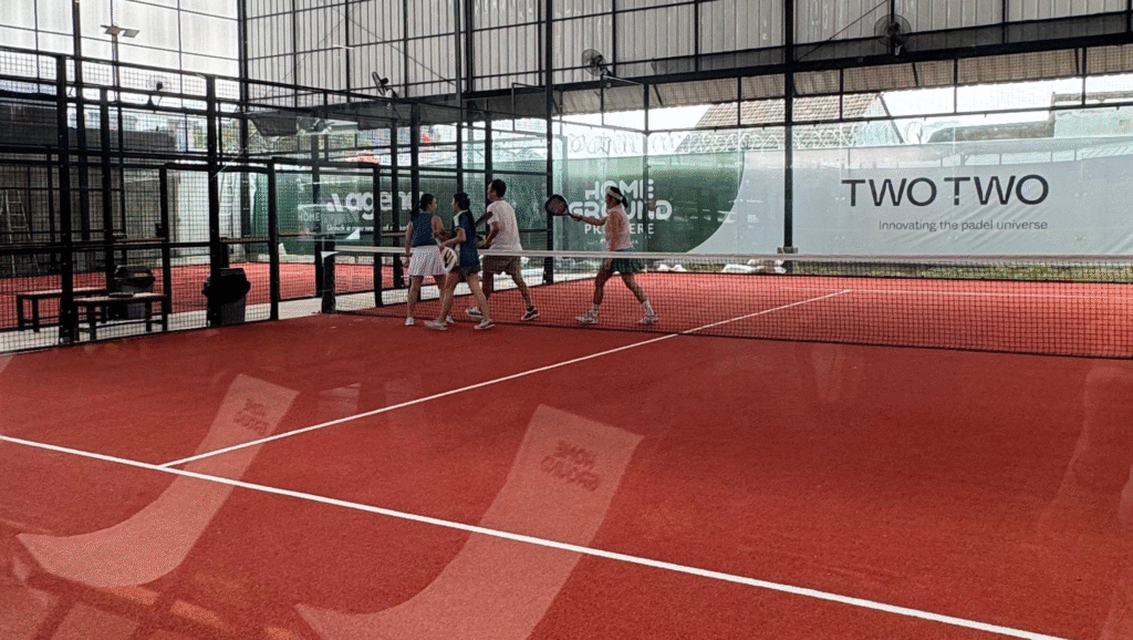 Homeground Padel punya vibe yang lebih santai dengan lapangan semi-outdoor dan outdoor. Tempat ini sering jadi pilihan untuk main bersama teman dalam suasana kasual. Ada juga area nongkrong setelah bermain sehingga cocok untuk olahraga sekaligus sosialisasi.